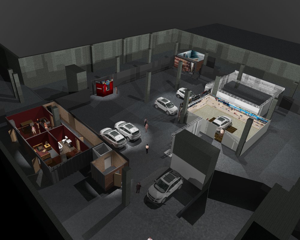 Ford Escape introduction. Rendered view from above showing the layout of the space from another point of view.