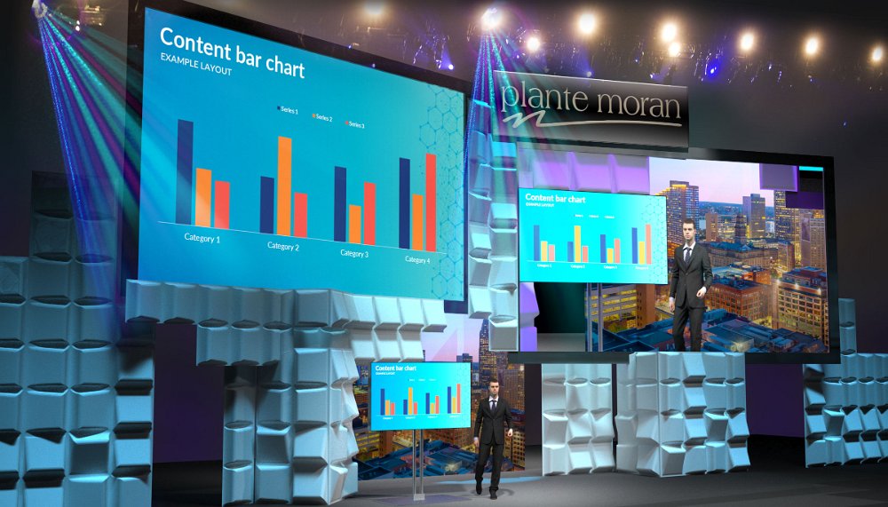 Plante Moran conference held simultaneously in three cities across the country. The set was copied with alterations to fit each space. Plante Moran conference Plante Moran conference Plante Moran conference Plante Moran conference Plante Moran conference Plante Moran conference Plante Moran conference Preliminary sketch of teh set. Rendering of the Scenery from middle of house Rendering of the Scenery from house right Rendering of the set viewed from house left dwg1-6fPlan of the Layout for the Skyline in Mccormick Place Chicago. dwg1-6FPlan of the Stage for the Fox Theatre, Detroit dwg1-6fPlan of the Stage for the Denver Opera House. dwg3Views of the Set. Ford Transit Launch